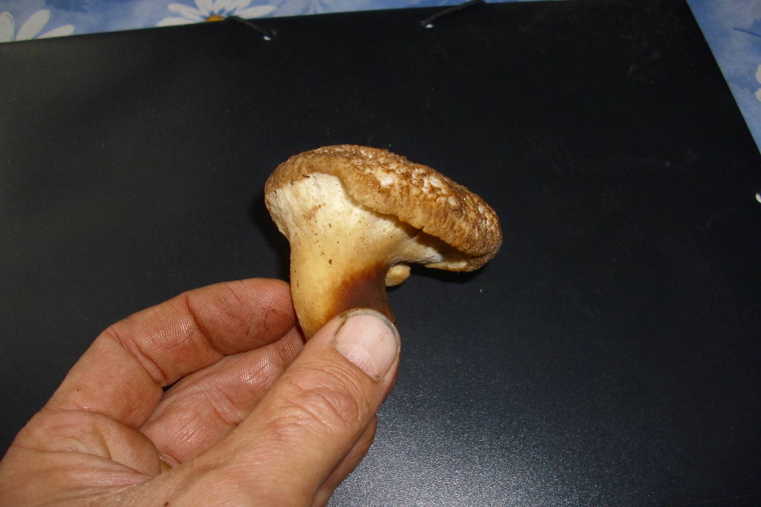 | помогите определить гриб! сорван в лиственном лесу. запах приятный. на ощупь плотный. с низу нет ни губки, ни юпочек, ни рёбрышек.